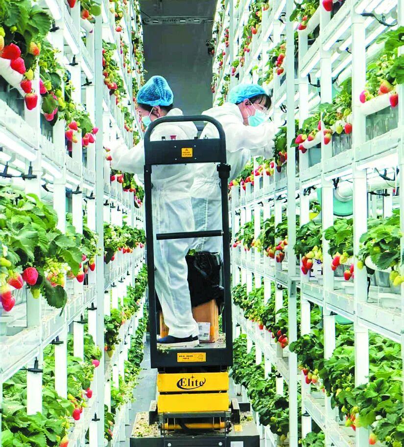 自今年8月啓建以來,植物工廠2號車間已率先投產,栽種草莓苗5000餘株,單個車間年產量預計達7至8噸。工廠計劃於本月底全面投運,屆時將擁有6個標準化車間。