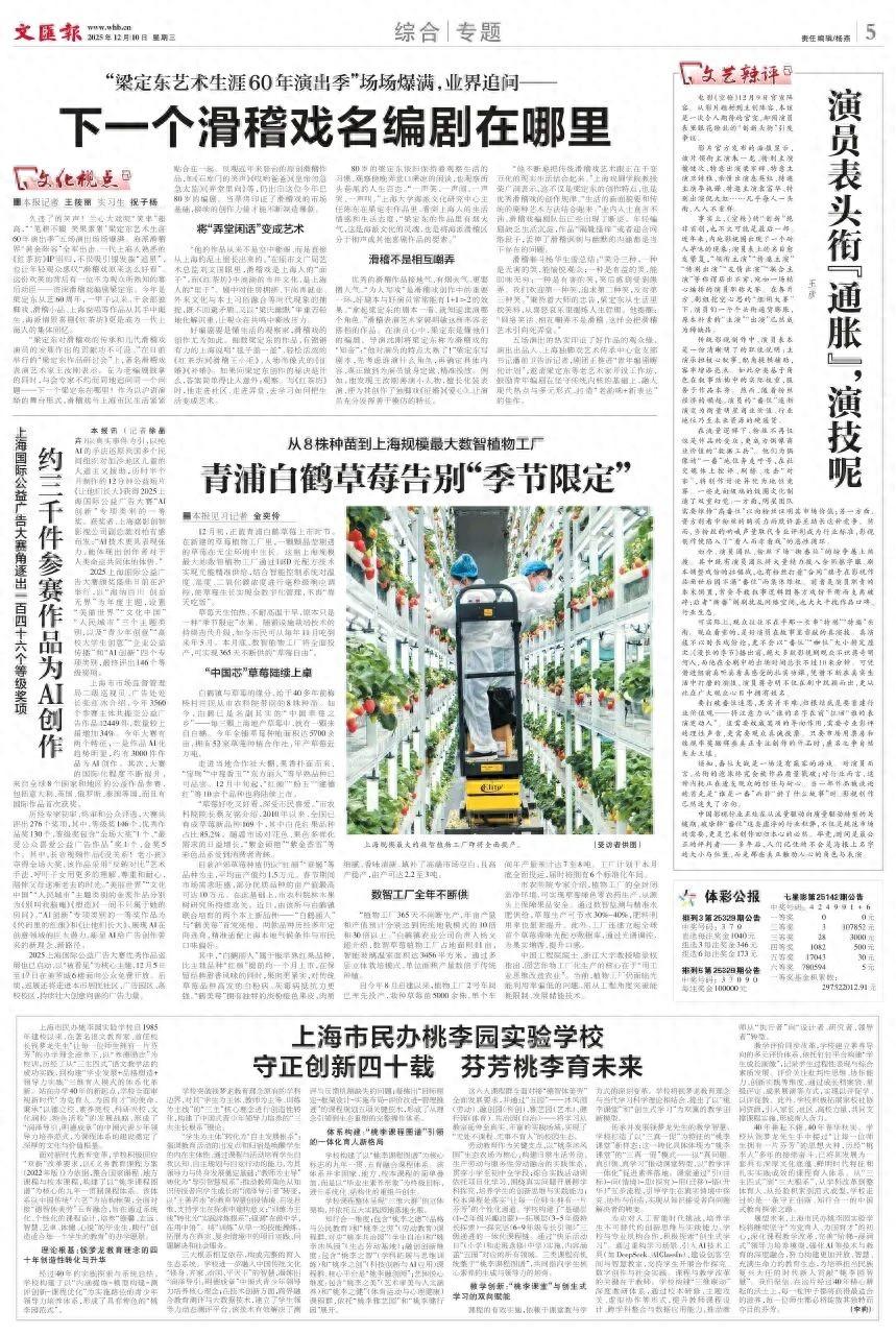 12月初,正值青浦白鶴草莓上市時節。在新建的草莓植物工廠裏,一顆顆晶瑩剔透的草莓在無塵環境中生長。這座上海規模最大的數智植物工廠通過LED光配方技術實現光能精準供給,結合智能控制系統對溫度、溼度、二氧化碳濃度進行毫秒級響應調控,使草莓生長實現全數字化管理,不再“靠天喫飯”。
