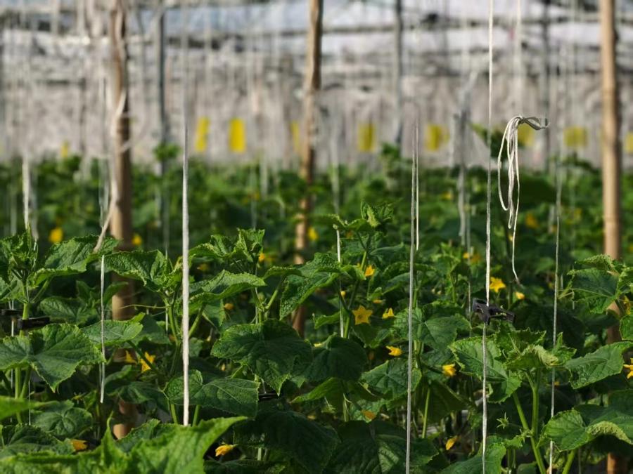 11月下旬以來,在金山區金山衛鎮的上海農瑞生態農業發展有限公司的種植大棚裏,翠綠多汁的水果黃瓜迎來豐收,正大量上市。