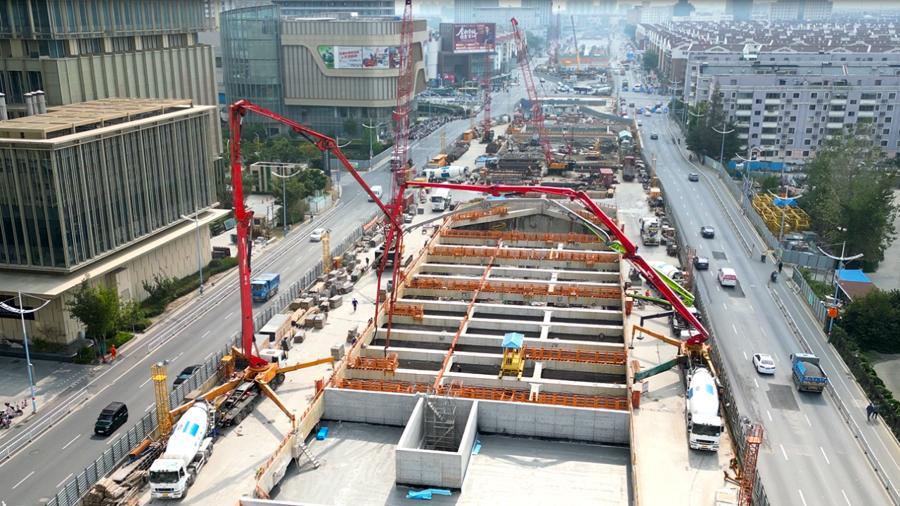 近期,上海示範區線1標青浦新城站3區基坑順利封頂,標誌着車站基坑工程一期施工全部完成。