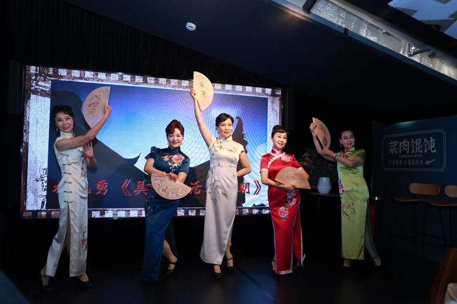 沒有演職人員參與的公益放映,又是什麼樣的情景呢?面對記者的好奇,劉愛唯不慌不忙:“今天情況特殊,我們把平時放映前的表演項目放到了映後。”於是,在國泰電影院的餐廳內,一場小型的文藝匯演在麻油飄香中展開:有平均年齡72歲的銀髮佳麗,在旗袍秀中展現昂揚的面貌;有醇厚嗓音演唱的意大利歌曲,帶來異域的風情;有深情的詩朗誦,以及激情澎湃的多人合唱。至此,答案分明:面向老年人的公益電影放映,往往又是一場老年人自己的文藝彙報演出。