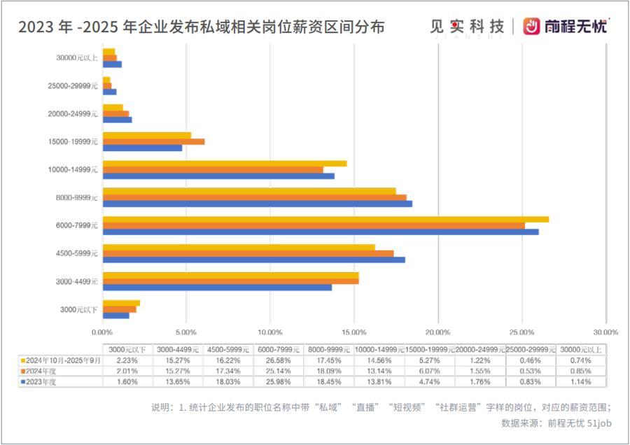私域人才有何發展的新趨勢與新機遇?日前,前程無憂51job與見實聯合發佈的《2026私域人才需求與薪酬報告》顯示,這一領域的人才薪資穩中有升。
