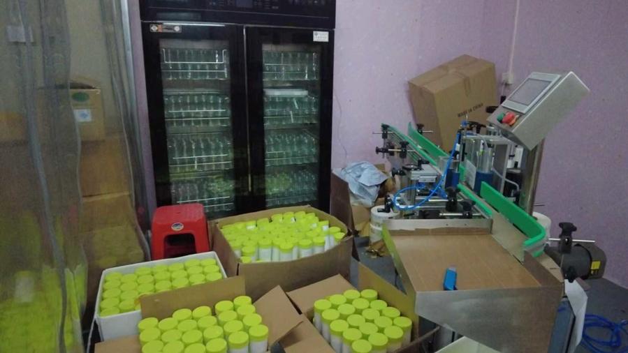 4日當晚22時許,抓捕小組在某小區一棟高層公寓樓內,將何某等三名人員堵在房內,同時,百餘名警力撲向位於多地的各生產、銷售窩點,將正準備銷燬轉移關鍵物證設備、原材料的二十多名嫌疑人悉數抓獲,當場繳獲包括護肝片、益生菌、黃金素在內的大量假冒僞劣保健品及包裝貼紙、封裝機器等。