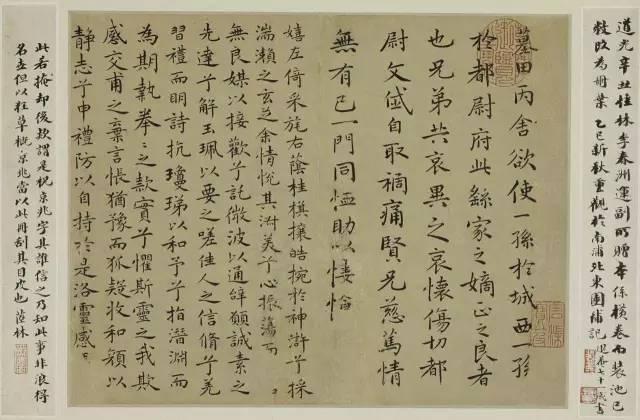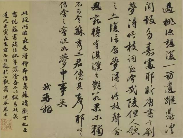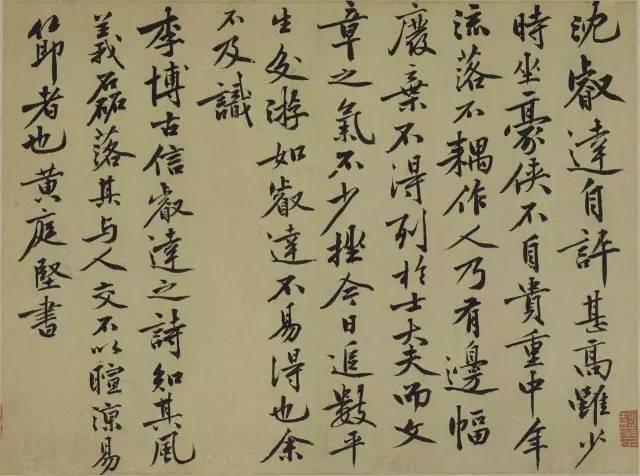 “…趙室四子,莆田恆守惟肖,襄陽(米芾)不違典刑;眉(蘇軾)、豫(黃庭堅)二豪,齧羈蹋靮,顧盼自得,觀者昧其所宗。子瞻骨幹平原(顏真卿),股肱北海(李邕),被服大令(王獻之),以成完軀。魯直(黃庭堅)自雲得長沙(懷素)三昧。諸師無常而具在,安得謂果非陪臣門舍耶?而後人泥習耳聆,未嘗神訪,無怪執其言而失其旨也。”