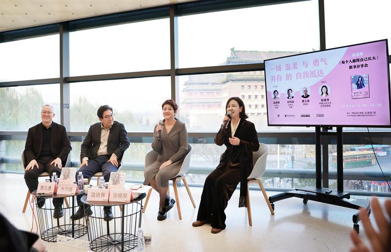 12月6日下午,北京坊PAGEONE書店內座無虛席,暖意融融。一場名爲 “一場溫柔與勇氣並存的自我抵達” 的新書分享會在此舉行,主角是許多人記憶中的“東方之子”——前央視主持人溫迪雅。她攜最新隨筆集《每個人都得自己長大》回到北京,與老同事、著名記者水均益,文學評論家張曉琴,以及出版人曹元勇一起,展開了一場關於成長、記憶與自我的真誠對談。