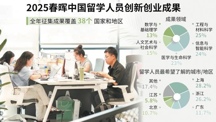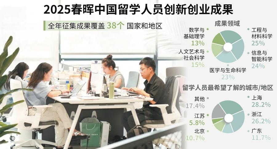 昨天,“春暉計劃”三十週年紀念暨2025春暉中國留學人員創新創業交流活動在滬舉行。孟炘然等紮根上海的歷屆獲獎者分享經驗。會場外,從機器人到美妝產品,留學人員的各類創新產品陳列得滿滿當當。
