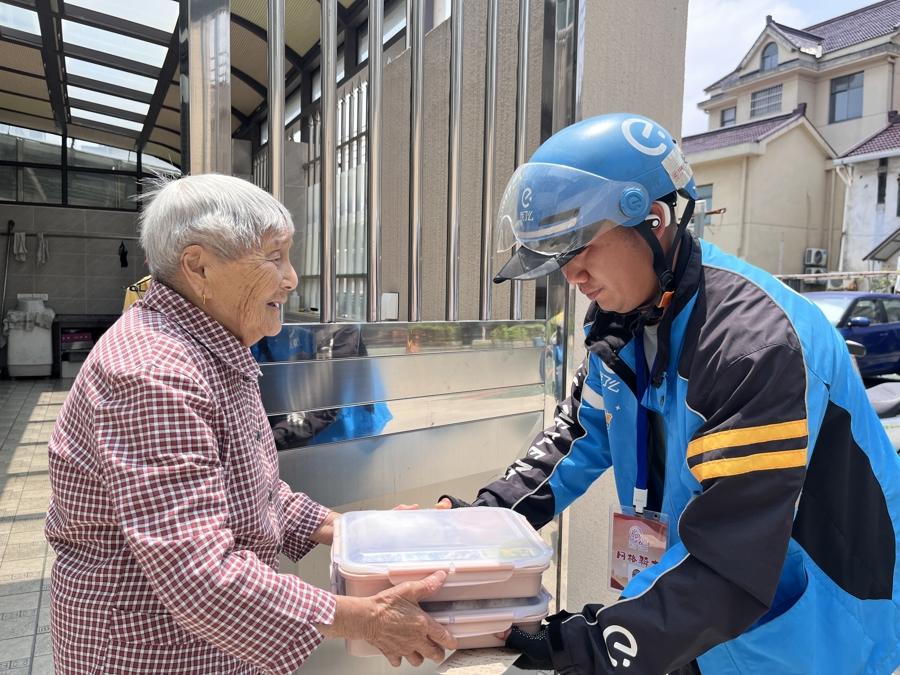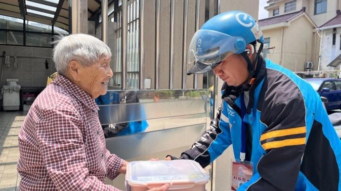 “網格騎士”爲轄區高齡老人提供點對點“愛心送餐”服務。