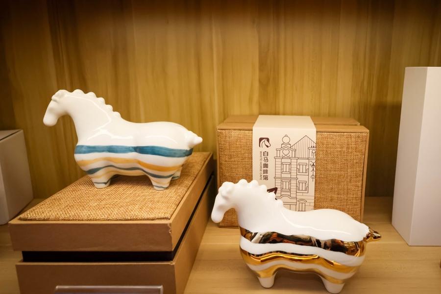 以北外灘爲創作對象的文創產品約佔20%,如世界會客廳款鎮尺、上海北外灘紀念郵折、北外灘立體造景便籤等,兼顧實用與美觀,可自用亦可作爲特色伴手禮,價格豐儉由人。位於北外灘的白馬咖啡館今年煥新開業,由於契合了明年的生肖“馬”,此次有多款文創產品入選“虹口禮物”。除了亞克力燈、馬克杯等日常用品,一款馬年擺件頗爲吸睛,上架即有遊客下單。主創人員介紹,這款擺件以“馬”字爲紐帶,以陶瓷爲材,用釉彩勾勒馬身紋理。既承載“一馬當先”“馬到成功”的美好寓意,又深植虹口地域記憶,讓生肖文化與地標相融,兼具藝術感與收藏價值。