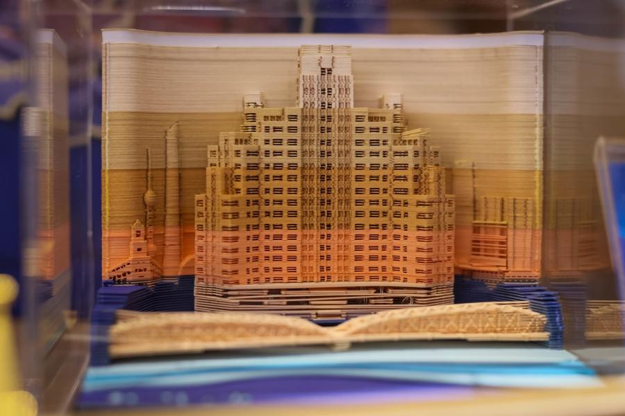 “虹口禮物”北外灘立體造景便籤用完後,出現虹口地標建築上海大廈、外白渡橋形象。文匯報記者 葉辰亮攝