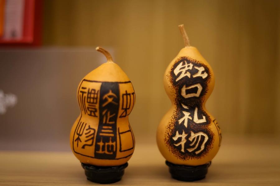 葫蘆諧音“福祿”,以海派葫蘆藝術雕刻技藝製作的烙葫蘆入選“虹口禮物”。文匯報記者 葉辰亮攝