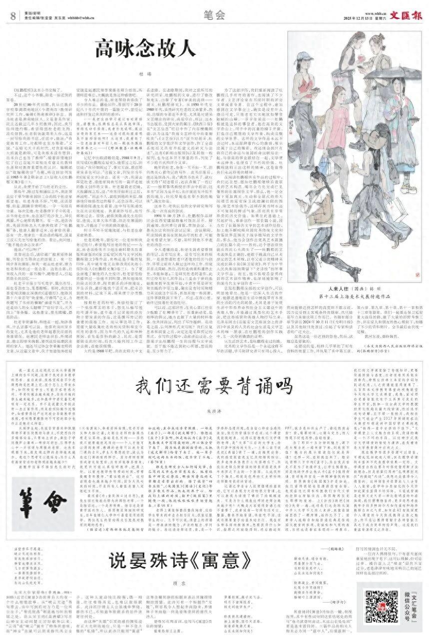 現在教學有很多資源可以借鑑,可謂亂花漸欲迷人眼,但是教學資源的豐富並不代表教學效果一定好。文學課堂自然也要與時俱進借用新方法新理念,但是前輩們那種“扎硬寨打死仗”的高超“內功”,我想還是值得今人借鑑的。這種借鑑並非要求人人去揹人人能背,在學科分類細化的今天作如此要求顯得不切實際。只能說背誦是老師文史氣質一種比較明顯的外在體現,我們需要借鑑的,更多是思考在教學手段多樣的今天如何葆有和培養教師自身之氣質,如何在AI智能深度介入課堂的今天體現教師主體之魅力,而不是讓教師匍匐於各種智能工具之下成爲簡單的傳聲筒。這是我們重溫背誦意義之所在。