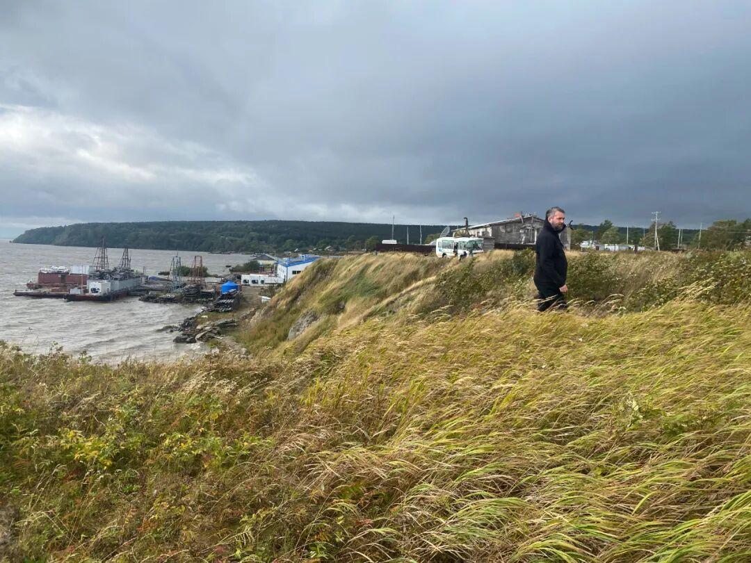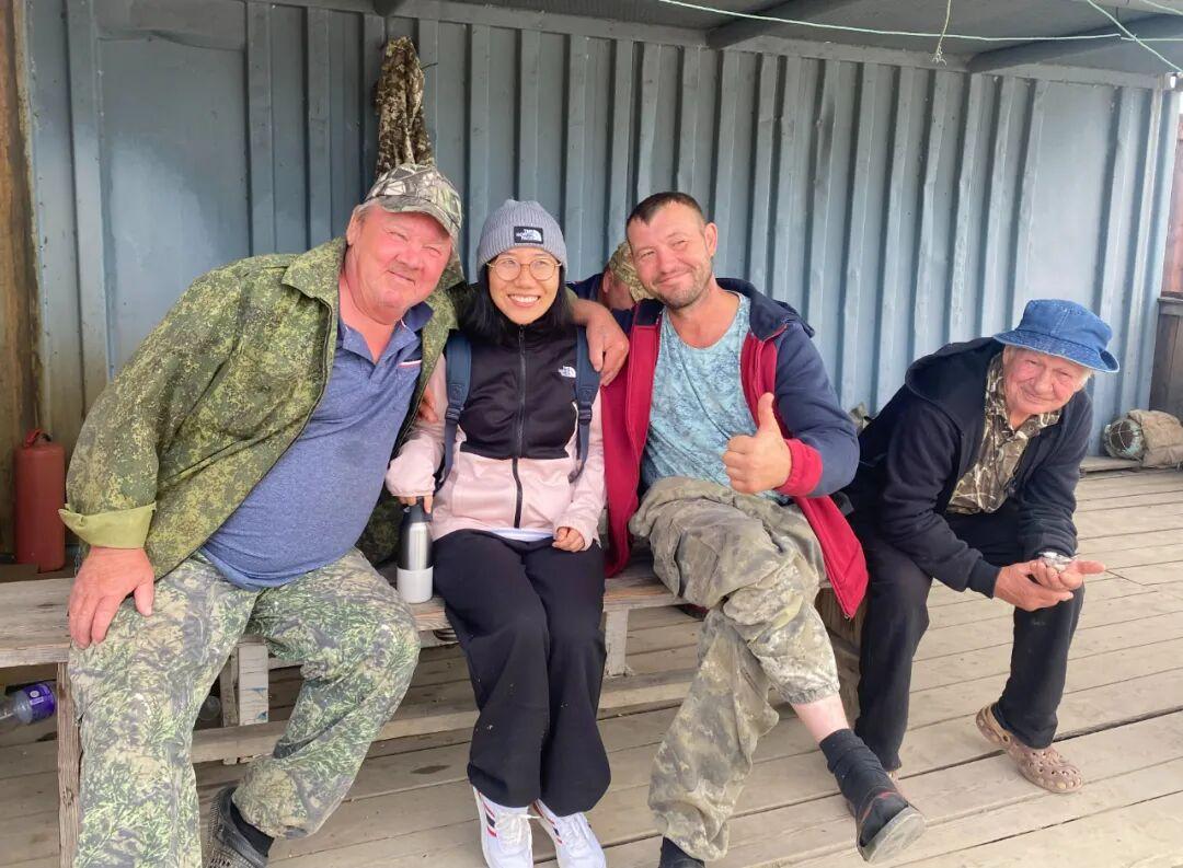 作者(中)與阿穆爾河邊的當地漁民