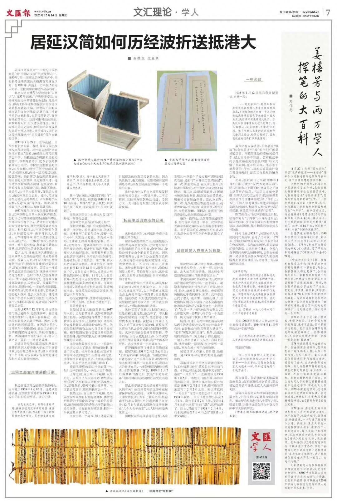 北京大學文博考古學院院史“大事記”之1937年記載:“盧溝橋事變後,文科研究所沈仲章冒着生命危險,幾經周折,將西北科學考察團存該所的居延漢簡轉移至香港大學。”存世兩千年的居延漢簡在烽火中得救,這批國寶免遭北京人頭蓋骨的命運,是抗戰中鬥智鬥勇的文化勝仗,也是驚險跌宕、有傷有痛的艱難仗。可惜,這段可歌可泣的歷史,原本鮮有人知,後又遭誤傳湮沒。今年是抗戰勝利八十週年,我們依據可見歷史資料、相關學術研究成果和部分當事人回憶,拼綴成文,以紀念這段抗戰烽火中“幾經周折”保存文脈的往事。