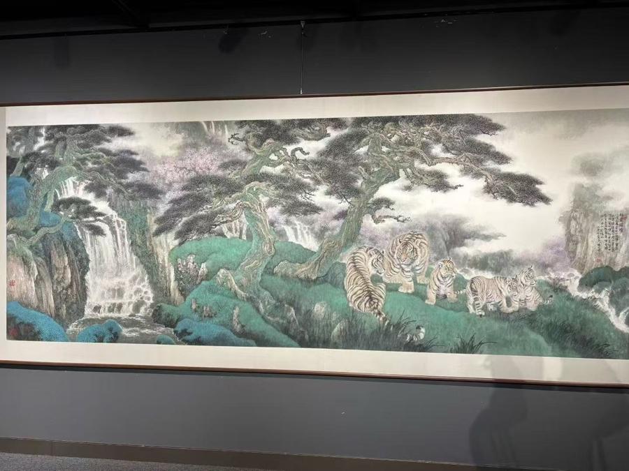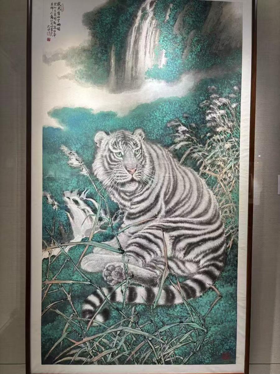 展覽現場,馮大中一系列以虎爲主題的畫作都是其歷年畫虎的經典之作,牽引了很多觀衆的視線。畫中的虎或登高吟嘯,或回眸露出溫情。全身細緻入微的刻畫加上嚴謹寫實的造型這些老虎煥然一新。馮大中坦言:“我都是從人性角度去表現老虎其美、其兇、其情。”另一些出現在展覽中的山水畫,則是馮大中的近作,寫胸中丘壑,筆下西山。“在審美取向和追求上,我還是崇尚古典美。我在現實生活中汲取素材,試圖表現這樣的古典美。”馮大中說。