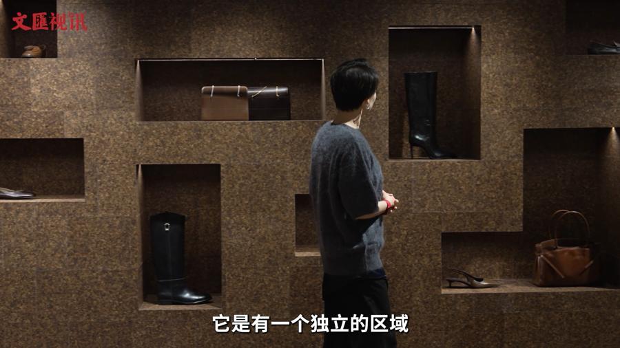 店內二層設有一個專屬空間,專門用於展示鞋履和配飾系列,並提供個性化服務,旨在爲顧客打造獨特的購物體驗。該設計將系列中最特別的單品集中於同一空間進行呈現,包括皮革製品,不僅提升了陳列質感,也優化了顧客的購物體驗。與此同時,鞋履和手袋系列也會在店內其他區域展示,與服裝系列無縫搭配,營造完整的時尚氛圍。