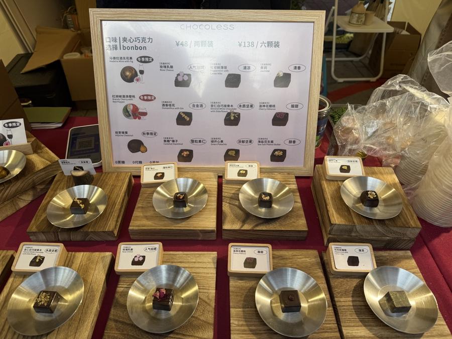 CHOC-A-LOT品牌主理人此次從北京飛來上海:“我們是主打美式烘焙的甜品店,目前在北京有6家店,希望通過巧克力慶典來上海推廣品牌。”雖然只是市集第二天,但主理人表示,搬到上海的肉桂卷、司康和曲奇產品幾乎被售空,所有拳頭產品第二天都已經斷貨,“我們考慮下週增加更多的貨。”