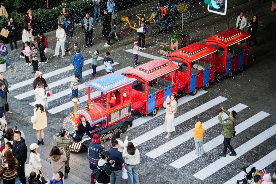 在此前的12月6日,前灘的“星光篝火聚會”還攜手榮威·上海兒童藝術劇場等知名藝術團體和學校,呈現“友友見面會”“星光奇巷漫遊”等演出互動環節。活動現場配合沉浸式飄雪場景,營造出濃厚浪漫的冬日節慶氛圍。同日啓動的“前灘星光王國號”童話專列,將於12月週末及元旦期間持續運行,帶領遊客穿梭於前灘公園巷,專列還提供互動設計與人偶同乘體驗。