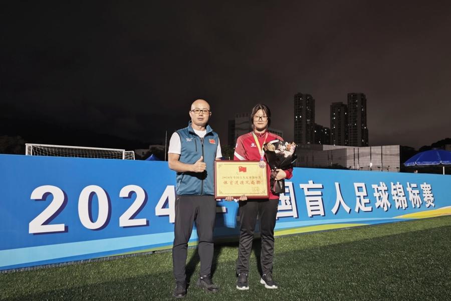 李進帶領福建女子盲足隊奪得銅牌,爲粵港澳殘特奧會征程畫上圓滿句號(受訪者供圖)