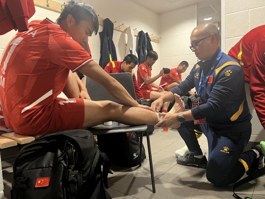 在更衣室內,李進還承擔起部分隊醫的職能(受訪者供圖)