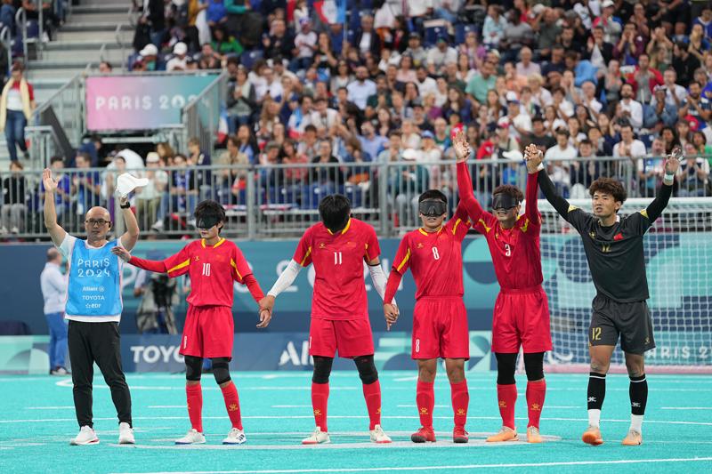 中國盲人男足一直位居世界強隊之列,2008年首次參加殘奧會便奪得銀牌,2023年又在世錦賽中斬獲亞軍。憑藉2022年拿下的盲足亞錦賽冠軍,中國男子盲足隊獲得了巴黎殘奧會的參賽資格。去年,李進與隊員們一同站上了殘奧會的舞臺。回想起當時的場景,他仍心潮澎湃:“在埃菲爾鐵塔下代表祖國比賽,心情無比激動。”