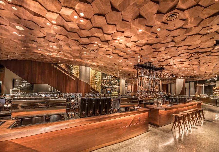 第二站:星巴克臻選上海烘焙工坊。與巨輪隔街相望的,是同樣話題感十足的星巴克臻選上海烘焙工坊。這裏不僅是一間咖啡館,更是一座沉浸式“咖啡劇院”:巨型烘焙設備、蜿蜒的傳送管道與開放式吧檯,共同構成一場關於咖啡的現場秀。