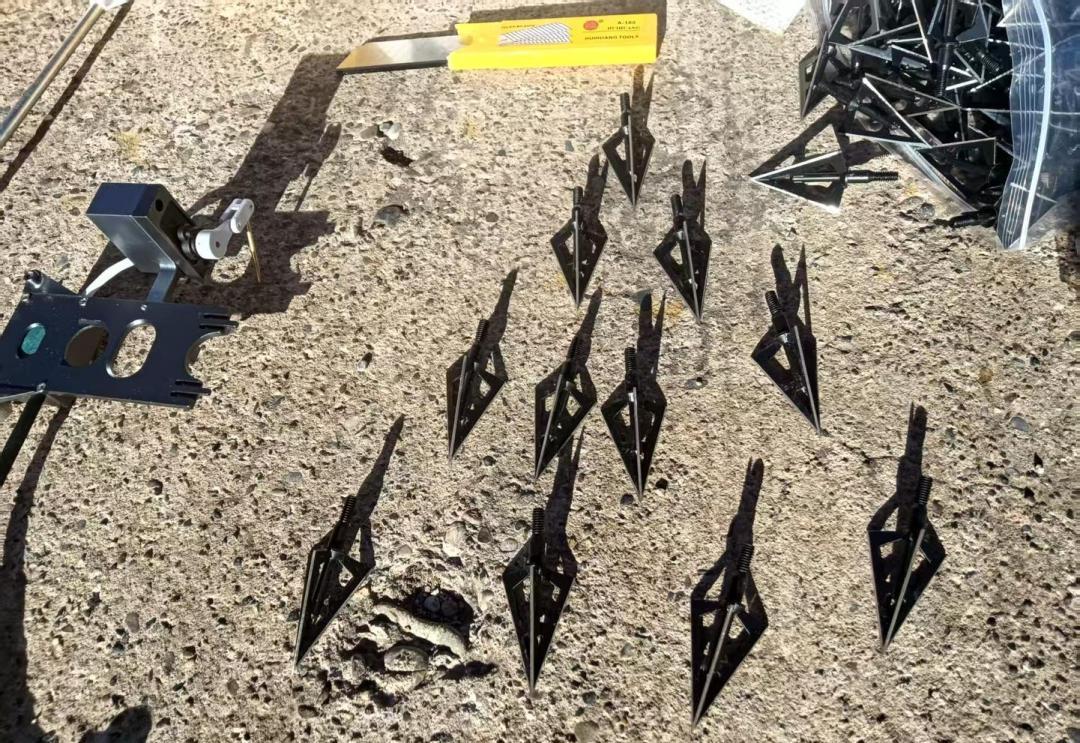張紀偉介紹,涉案的無人機、箭頭等設備,均爲嫌疑人在網上購買,並且網上“行話”將專門用於狩獵的箭體稱之爲“牙籤”。