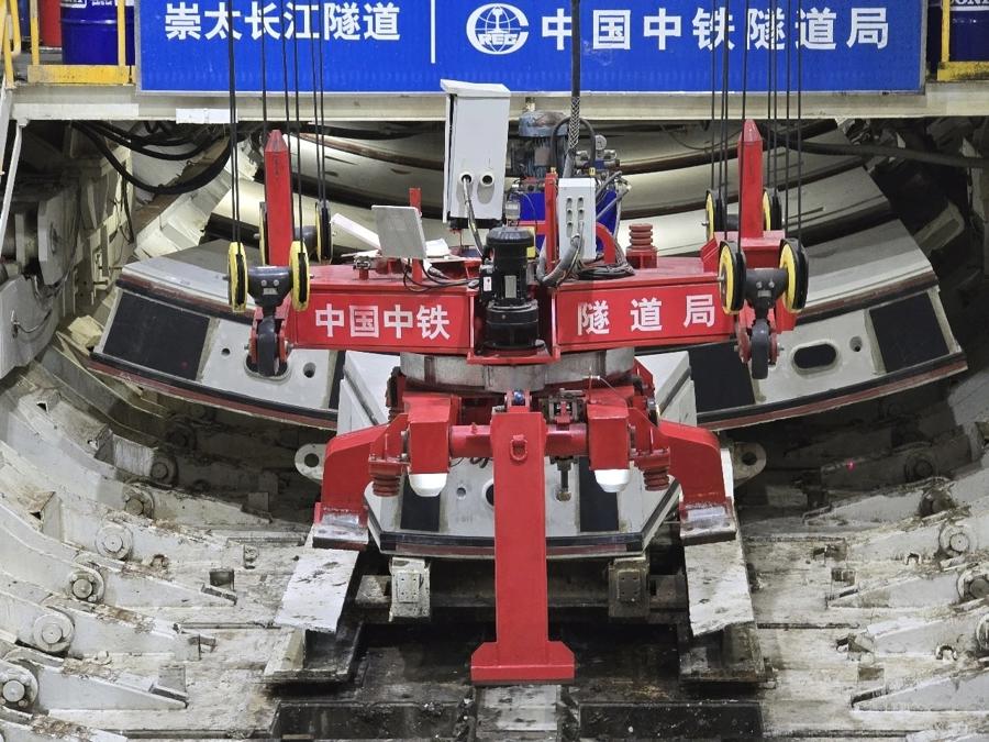 今天,在萬里長江入海口,我國自主研製的世界最大直徑高鐵盾構機——崇太長江隧道“領航號”掘進突破10000米大關,距離長江南岸僅剩1000米,標誌着崇太長江隧道工程向着打通“最後一公里”、實現350公里時速高鐵過江的目標邁出了關鍵性的一步。