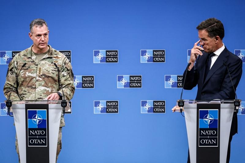 9月12日,北約祕書長呂特(右)和北約歐洲盟軍最高司令亞力克蘇斯·格林克維奇在位於比利時布魯塞爾的北約總部出席新聞發佈會。新華社
