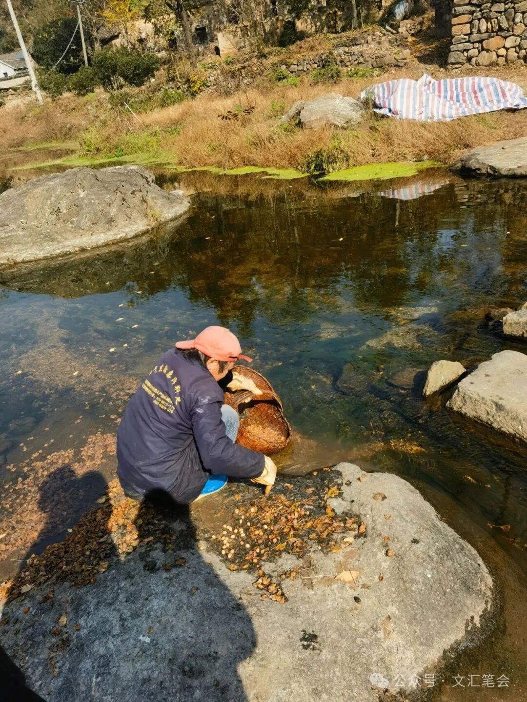 劉咀村溪淘洗銀杏果的大姐