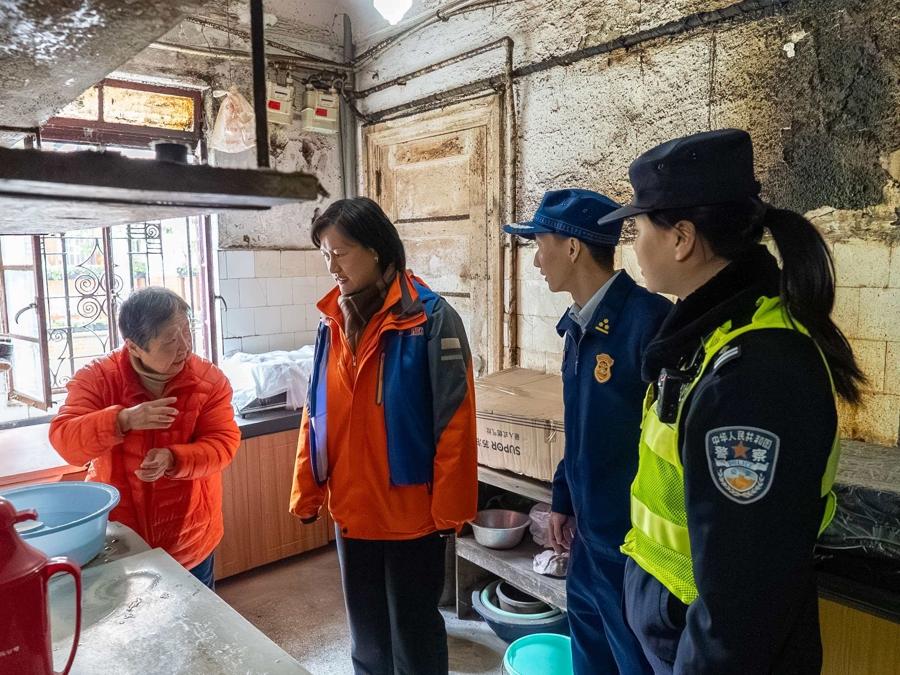 “王阿婆,電暖器要遠離窗簾,插線板別插太多電器,用完記得及時斷電。”12月16日,在長春路餘慶坊,虹口消防救援站消防員門志超一邊仔細檢查84歲獨居老人王阿婆家中的用電、用火情況,一邊耐心講解消防安全注意事項,併爲老人發放《家庭防火“十不要”》安全提示貼。這暖心的一幕,正是虹口消防推行網格化管理,創新基層火災防控治理的生動縮影。