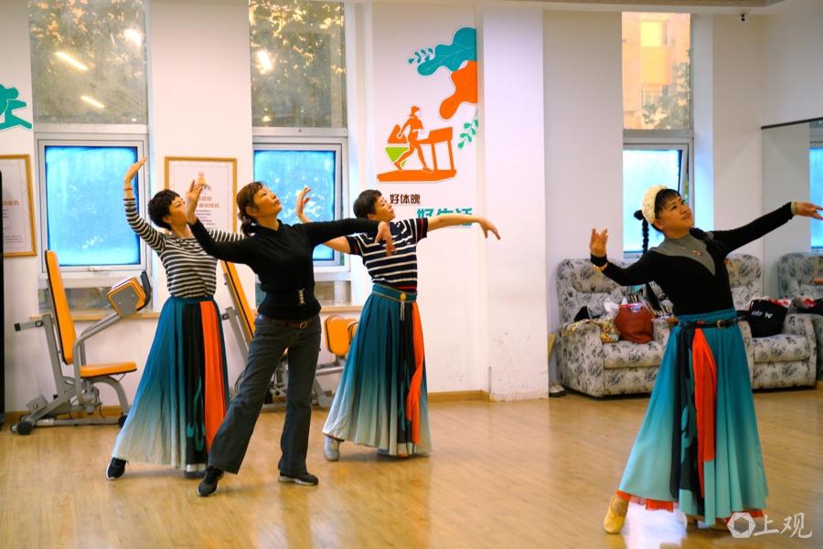 普陀區甘泉黨羣服務中心,老師帶領同學們一起跳舞。(李相如攝)