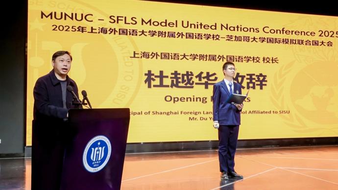 上外附中校長杜越華說,當今世界面臨氣候危機、地緣衝突、技術革命等挑戰,青年一代的智慧與擔當愈發關鍵。他鼓勵與會學子在模聯舞臺上,通過立場辯論、決議草案撰寫、多邊協商等環節,深入剖析全球性挑戰的深層邏輯,在思想交鋒中碰撞智慧火花,在協作共贏中凝聚發展共識,以“外交官”的視角體悟人類命運共同體的深刻內涵,將個人成長軌跡與人類進步事業緊密相連。