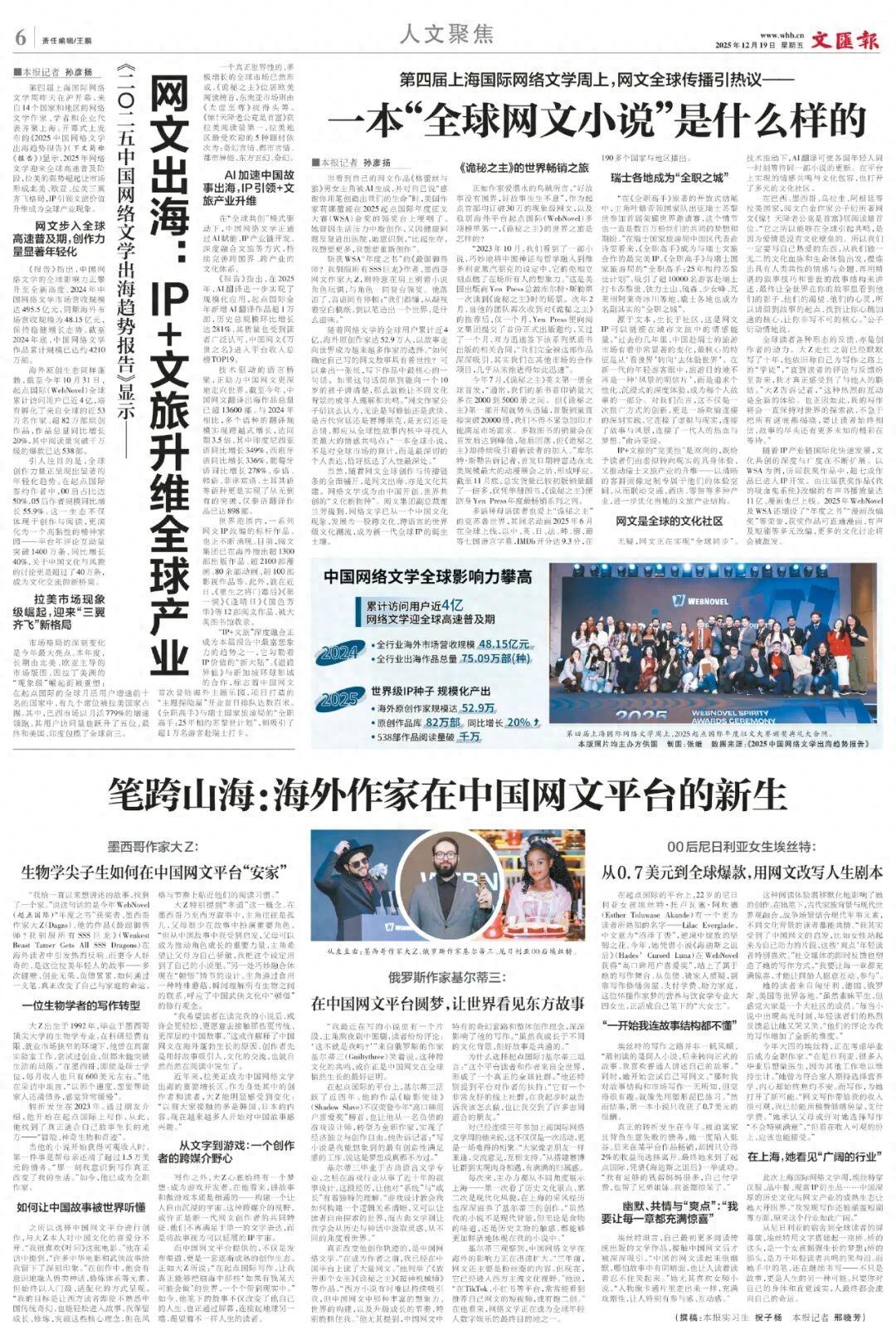 第四屆上海國際網絡文學週上,2025起點國際年度徵文大賽頒獎典禮大合照。本版照片均主辦方供圖 製圖:張繼 數據來源:《2025中國網絡文學出海趨勢報告》