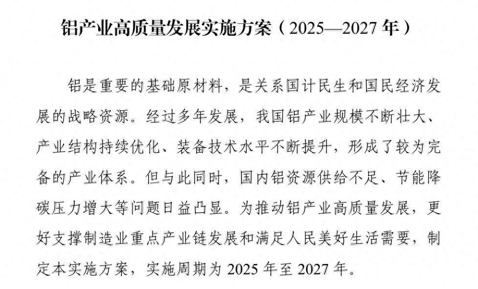 同樣的,在今年3月工信部等十部門聯合印發的《鋁產業高質量發展實施方案(2025—2027年)》中,國家明確將“以鋁節銅”列爲擴大鋁消費的重點方向: