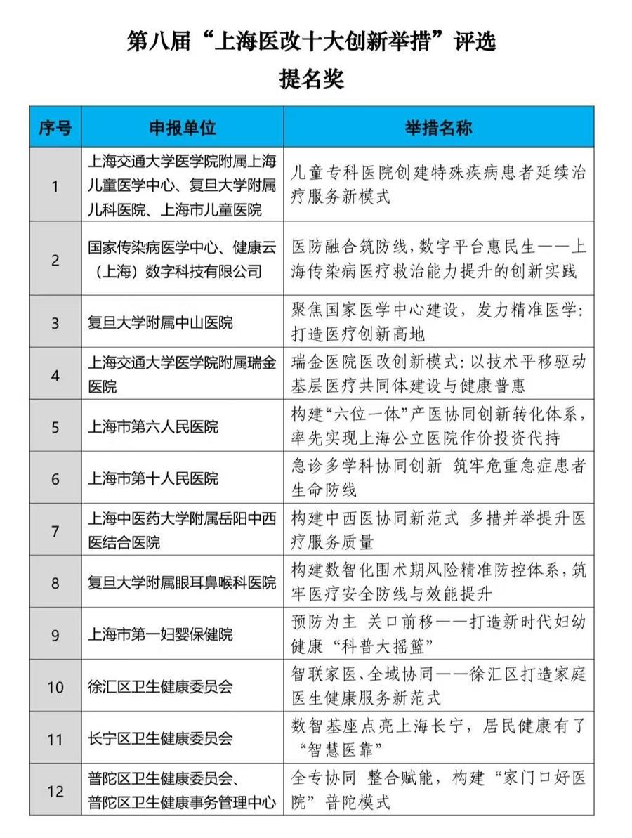 深化健康上海建設,今天(12月19日),第八屆“上海醫改十大創新舉措”揭曉,“號源下沉”、醫保商保直賠“上海模式”等舉措列爲十大獲獎項目。