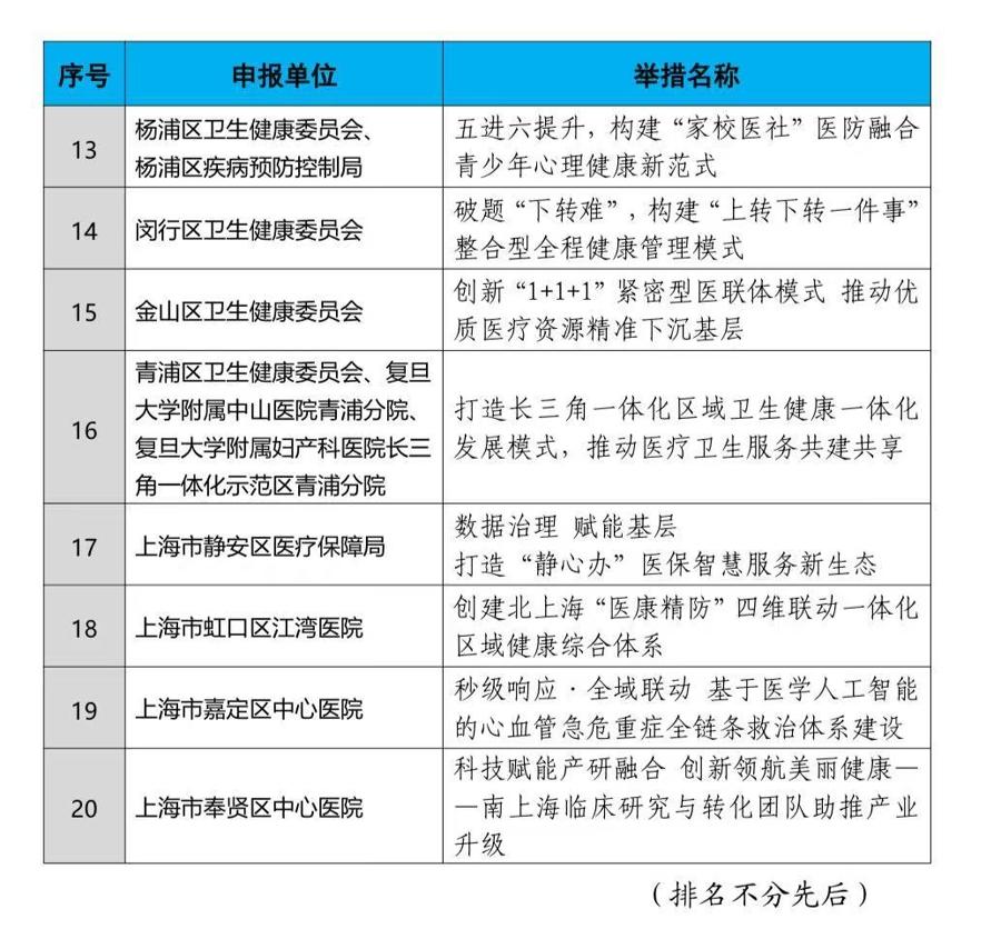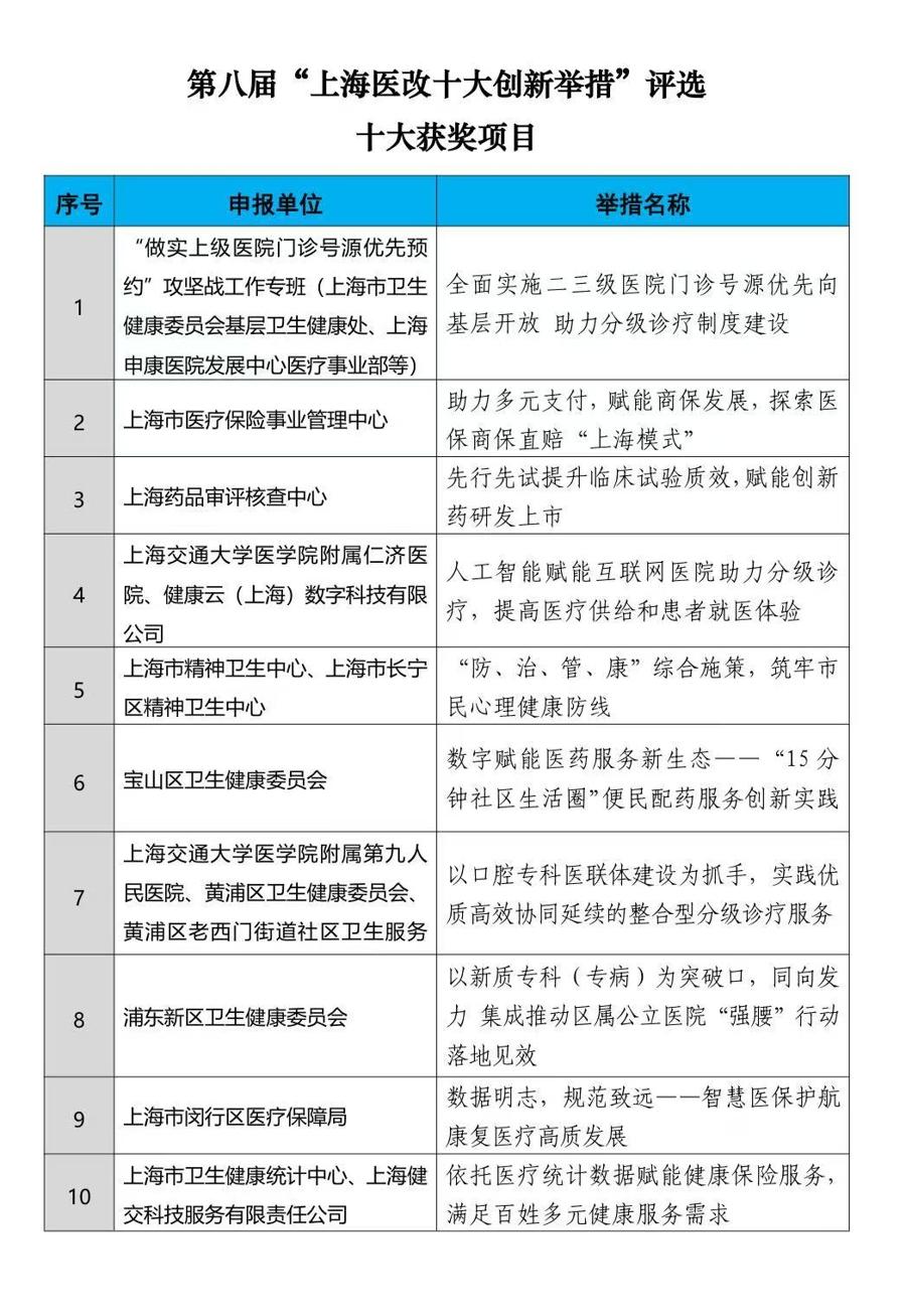 近兩年,上海全面實施二三級醫院門診號源優先向基層開放,助力分級診療制度建設,這項工作被老百姓簡稱爲“號源下沉”。與此同時,上海助力多元支付,賦能商保發展,探索醫保商保直賠“上海模式”,爲大衆就醫構建多元支付保障體系。人工智能(AI)時代,AI賦能互聯網醫院助力分級診療,進一步提高醫療供給和患者就醫體驗。這些創新舉措均榜上有名。