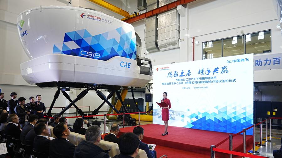 東航此次接收的飛行模擬機,是目前C919機型最先進的全動飛行模擬機,具有卓越的視覺逼真度、強勁的虛擬計算能力,可實現高仿真度、多種類科目的飛行訓練,營造幾近真實的模擬飛行效果。模擬機投入使用後,有效填補了航空公司在C919機型訓練裝備領域的空白,將爲東航飛行訓練體系的全面升級提供關鍵支撐,也將進一步築牢國產大飛機商業運營的“安全基石”。東航將總結反饋模擬機實際運行情況,形成“運營-訓練-研發”的良性循環,爲C919機型的持續改進、迭代升級貢獻力量。