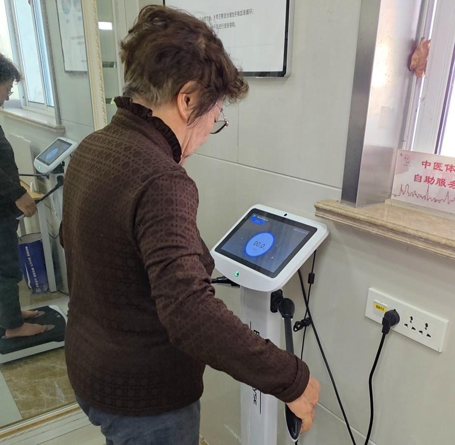 脫下襪子,穩穩站上人體成分分析儀,洪阿姨又開始了“每月一考”。