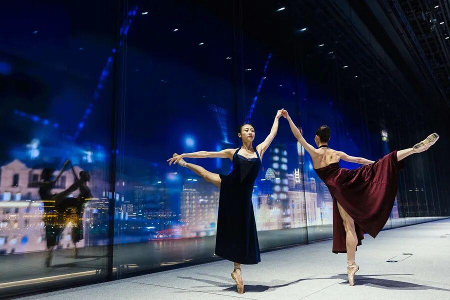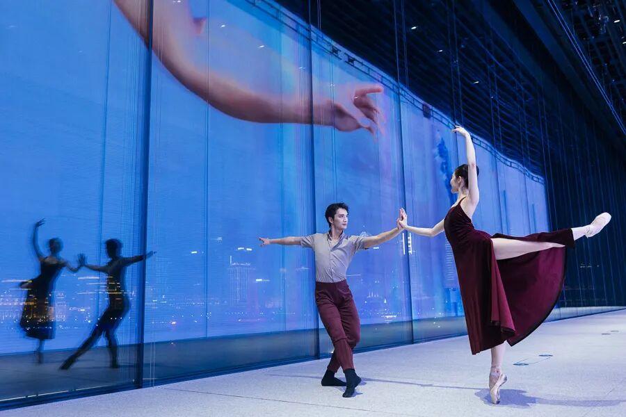 上海芭蕾舞團演員在浦東美術館“鏡廳”起舞