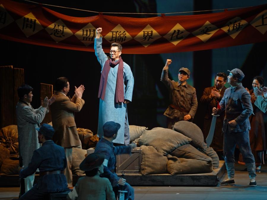 原創民族歌劇《義勇軍進行曲》以黨史專家吳海勇的紀實文學作品《起來<風雲兒女>電影攝製與<義勇軍進行曲>創作歷程紀實》爲文獻依據,藝術化再現國歌創作歷程,生動塑造了田漢、聶耳等進步文藝工作者“以筆爲刀槍”的羣像風采。劇中既有《鳳凰的再生》《上海,我熱愛的地方》等感人至深的詠歎調,也有《字字重千鈞》等展現創作靈感迸發的經典二重唱,將國歌背後那段波瀾壯闊的救亡歲月娓娓道來。