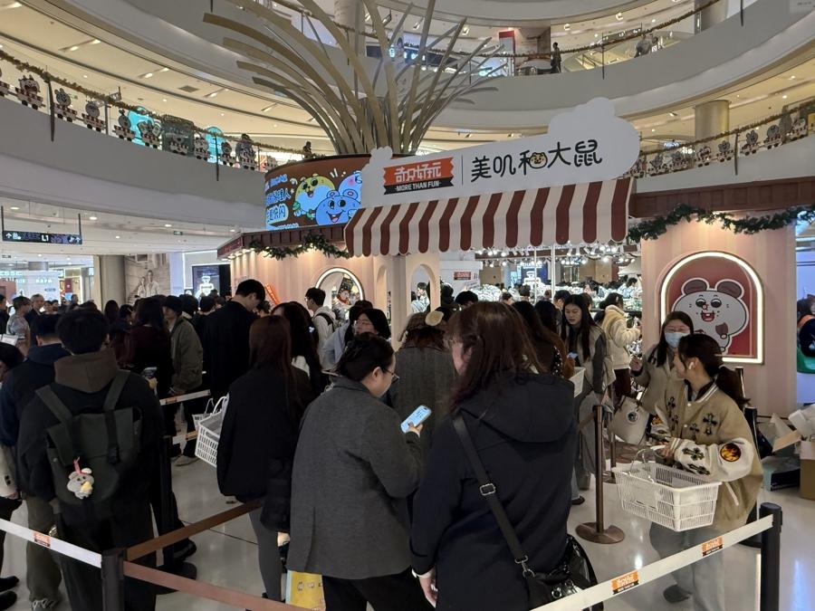 “早上合生匯開門前,排隊的消費者繞到了商場外。”上海五角場合生匯項目總經理黃鐘瑩介紹,"美嘰與大鼠” 全國首展,本身就是一個很有圈層文化、也很適合社交的 IP,“它是我們合生匯和年輕人建立更深情感連接的重要一步,也是我們希望把自己打造成潮流文化發源地的一個關鍵動作。”