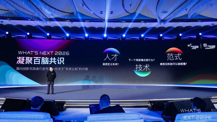 此次大會的一個重頭環節,是上海未來產業基金髮布《2026年度預測報告》。報告來自會前他們對150多位戰略科學家、創新家和投資人進行的深度訪談,其中既提取了“AI”“多技術融合”“開源”“複合人才驅動”等關於未來驅動力的共識,還包括一些更有啓發性的“非共識”線索。