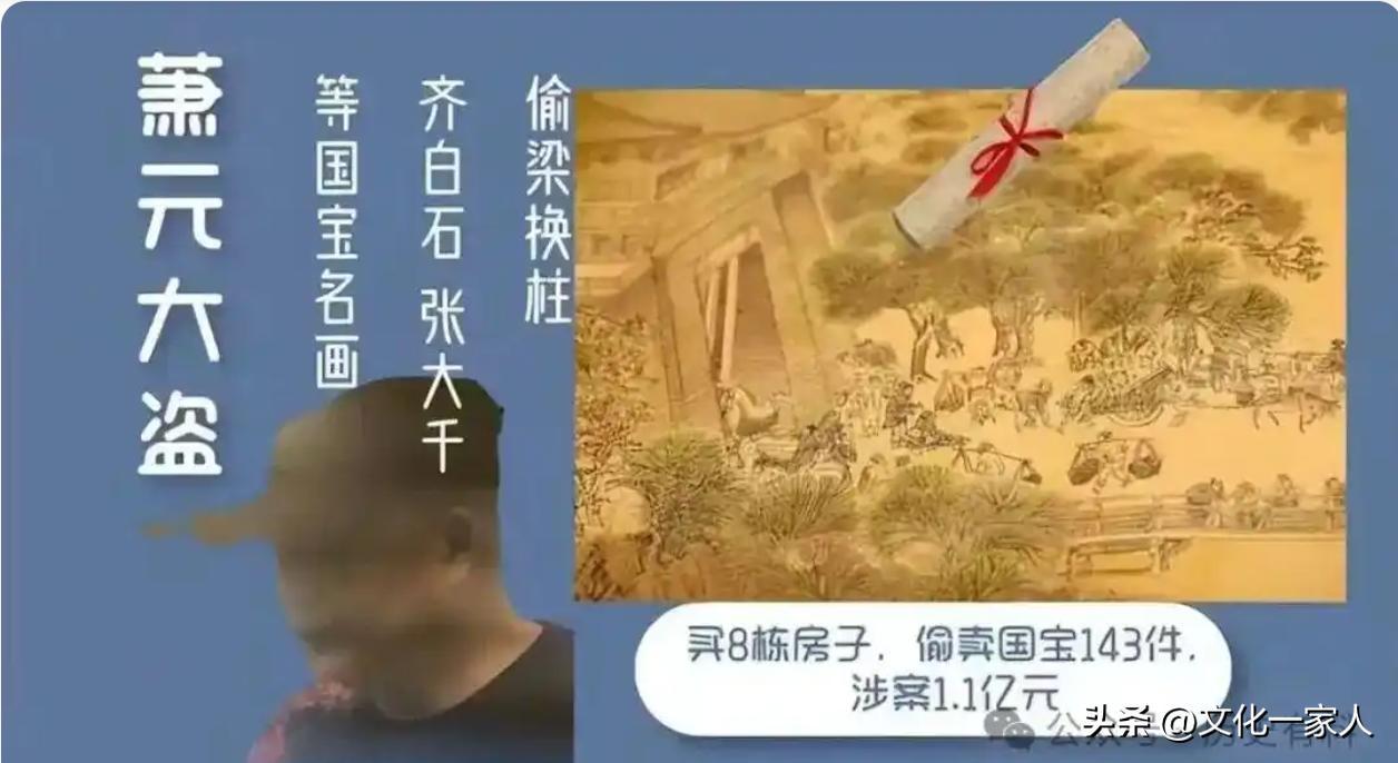廣州美術學院圖書館,原館長蕭元,把館內齊白石,張大千,李可染,黃賓鴻等名家畫作盜出臨摹後,把臨摹的假畫送回館內,採用狸貓換太子手法,把真畫據爲己有,並已拍賣出3000多萬。