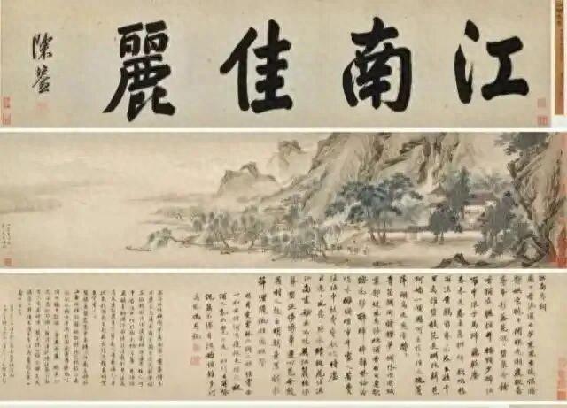 記者瞭解到,除了藏品,博物館還會將達不到館藏標準但對研究具有參考價值的文物納爲參考品。根據南京博物院出示的1961年專家鑑定意見中的“陳鎏題引首真”可以推斷,《江南春》畫卷至少是一幅明代畫作。因爲陳鎏爲嘉靖十七年進士,曾官至四川右布政使。明代畫作流傳至今,已屬不易,又經多位大藏家之手遞藏,必然有其可取之處。正如收藏家、觀復博物館創辦人馬未都所言,即便被認爲“不真,它依然有價值”。