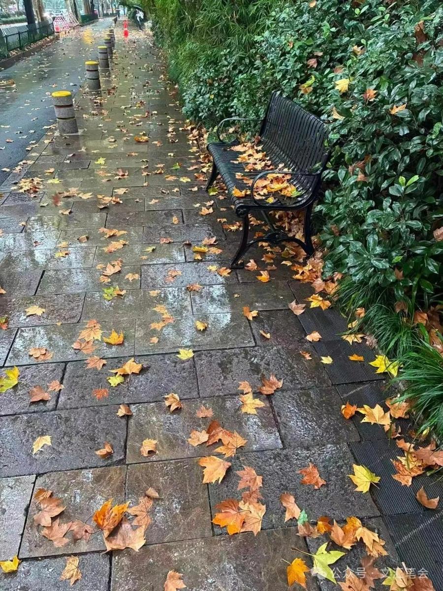 到杭州那天,又是降溫又是風雨。曙光路的兩邊,鋪滿了溼噠噠的金黃落葉(上圖),遠處是一籠起伏的小山。走在這樣的路上,雖有寒意,卻說不出的自在。儘管那個時候我還不知道恰逢“蕩一圈”的盛事,以爲自己只是在這樣的天氣裏見見朋友。