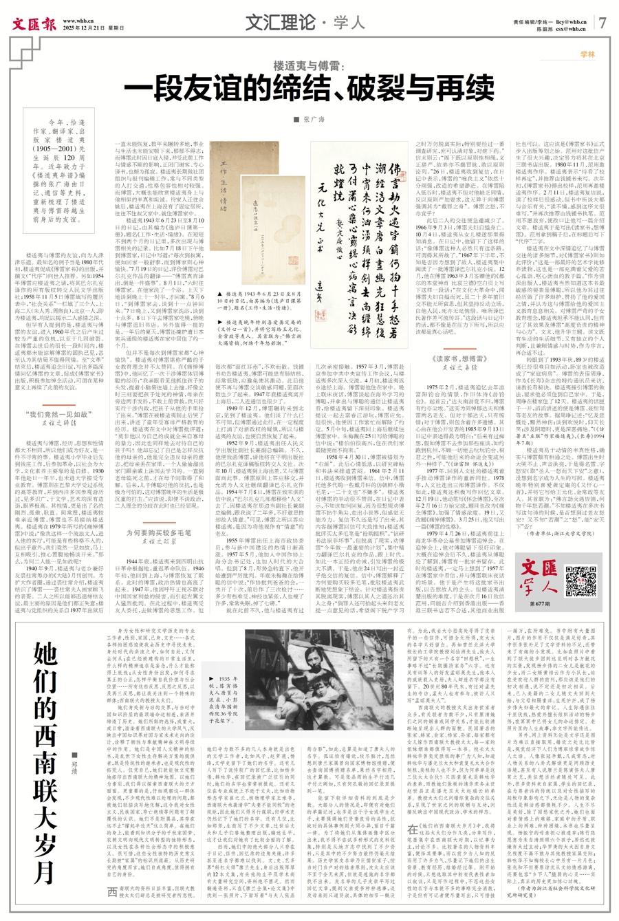今年,恰逢作家、翻譯家、出版家樓適夷(1905—2001)先生誕辰120週年。近年致力於《樓適夷年譜》編撰的張廣海由日記、通信等史料,重新梳理了樓適夷與傅雷跨越生前身後的友誼。