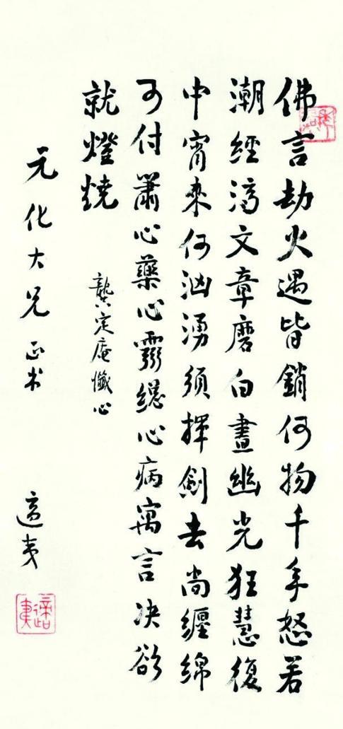 樓適夷晚年特別喜愛龔定庵的《又懺心一首》,並將它寫給王元化、金常政等友人。其首聯爲:“佛言劫火遇皆銷,何物千年怒若潮。”