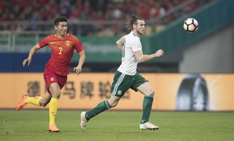 2018年,中國隊曾在中國杯上約戰威爾士隊,與國際巨星貝爾(右)同場競技,但0比6的慘敗並無太大實戰價值