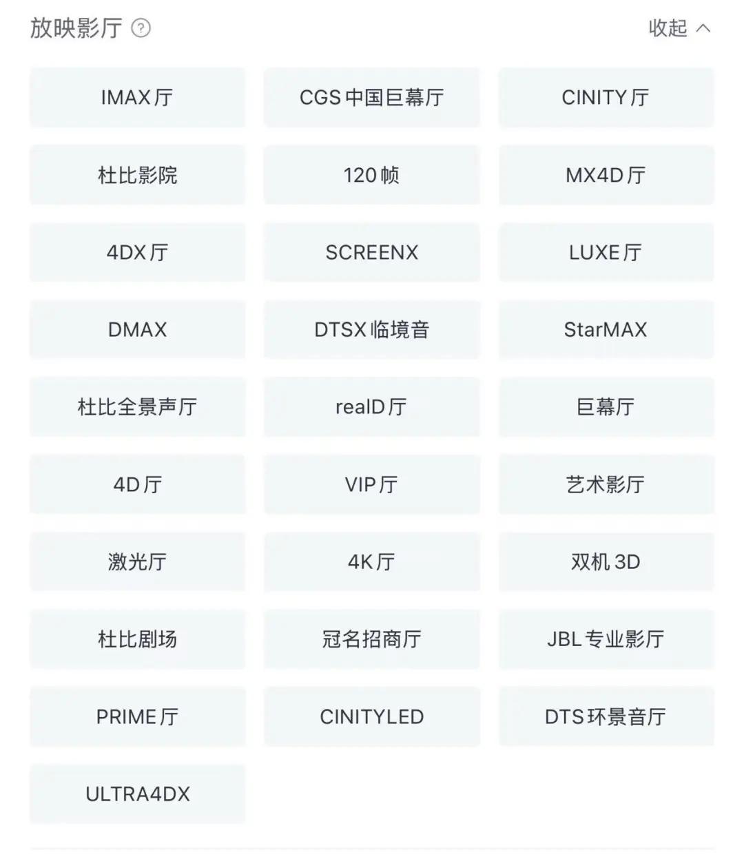 淘票票上,琳琅滿目的特效廳