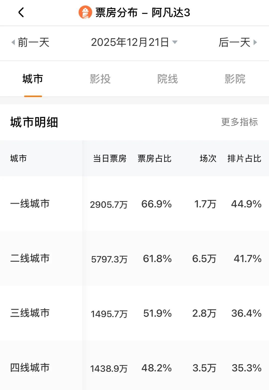 燈塔上,《阿凡達3》票房在各線城市均勻分佈